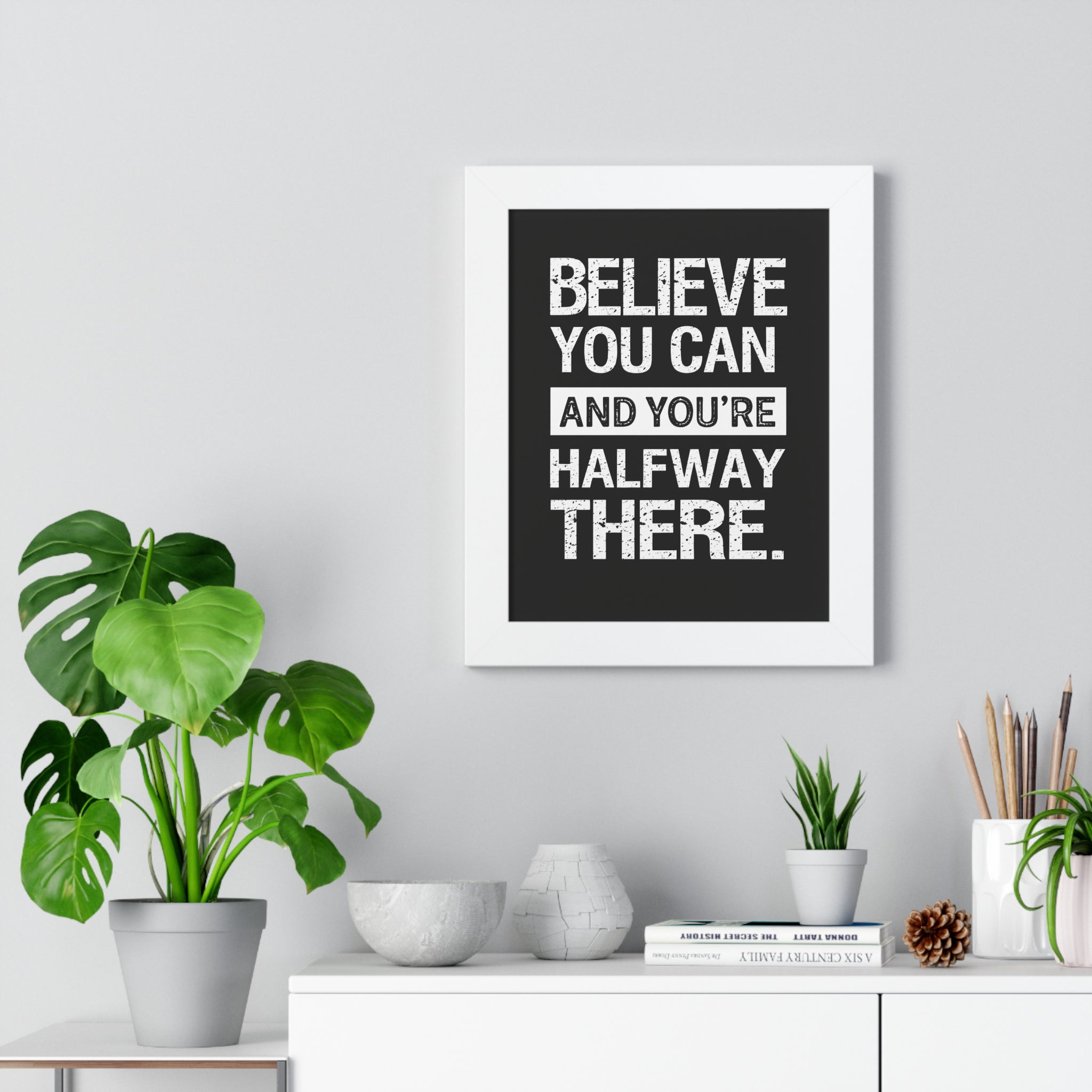 Bold, simple, and direct, this print is designed to keep momentum front and center. “Believe You Can and You’re Halfway There” serves as a daily reminder that confidence is often the first step forward—whether you’re building a business, chasing a goal, or pushing through a tough day.